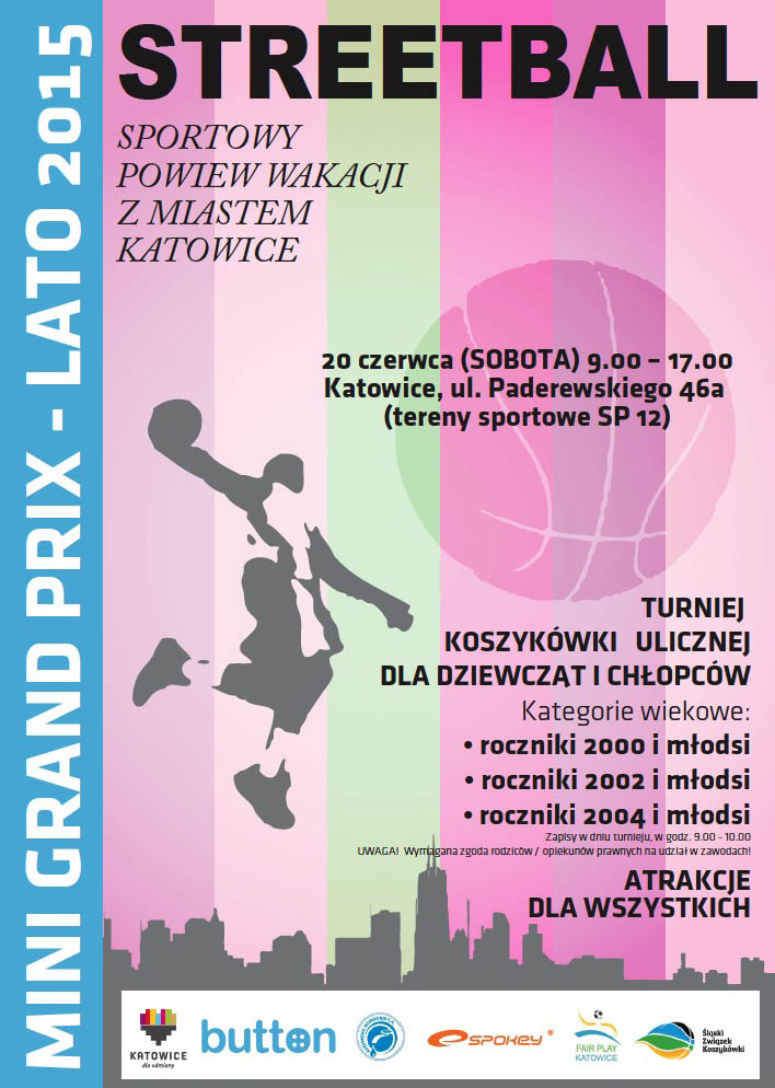 Już 20 czerwca br., w Katowicach, kolejna odsłona „STREETBALLOWEGO MINI GRAND PRIX – LATO 2015! Turniej koszykówki ulicznej dla dziewcząt i chłopców wraz z atrakcjami towarzyszącymi, tym razem odbędzie się na terenach sportowych Szkoły Podstawowej nr 12, przy ul. Paderewskiego 46A