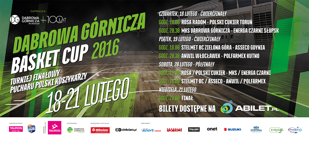 W dniach 18-21 lutego w Dąbrowie Górniczej odbędzie się Turniej finałowy Pucharu Polski koszykarzy – Dąbrowa Górnicza Basket Cup 2016.