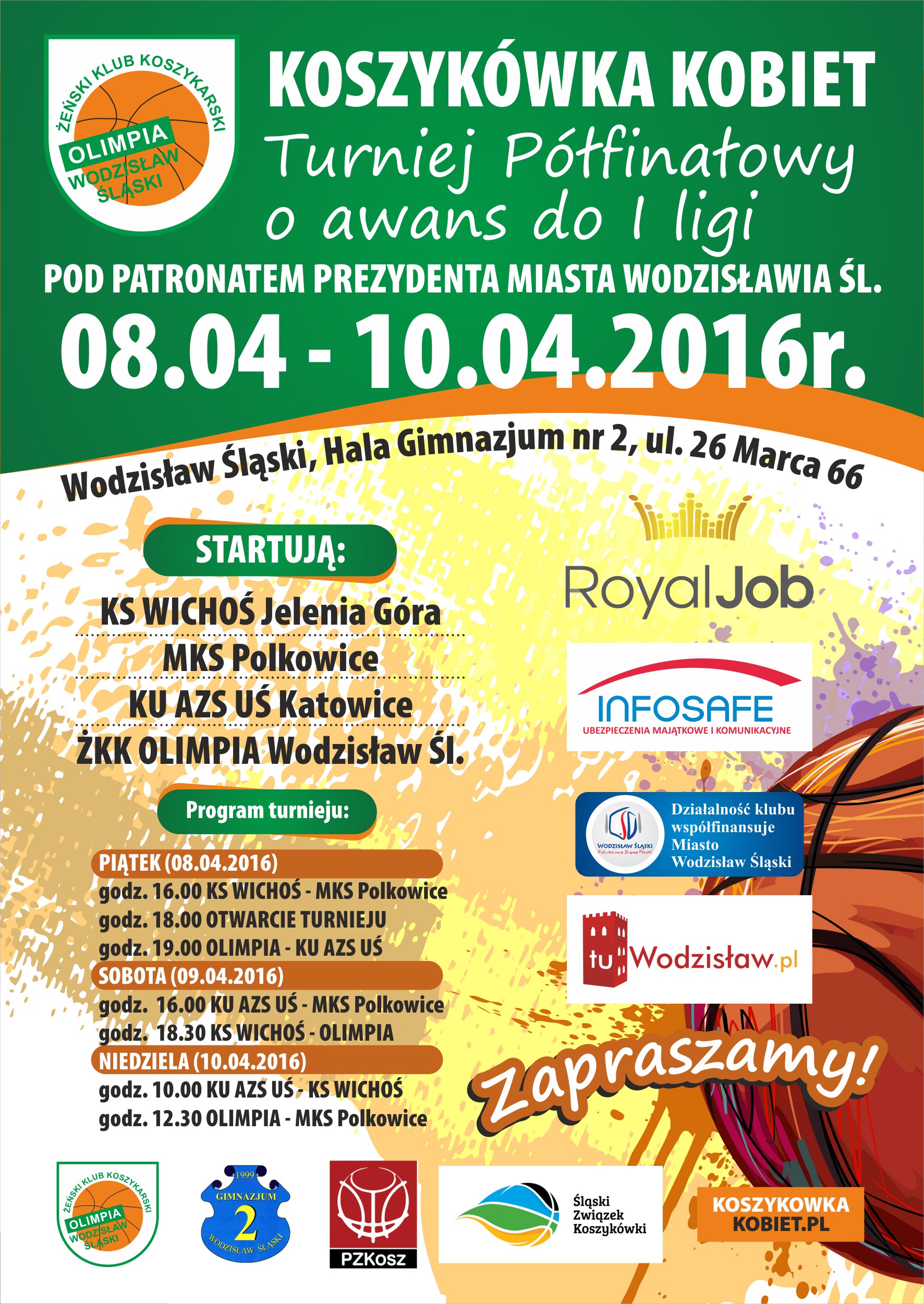 W imieniu organizatorów, serdecznie zapraszamy do Wodzisławia Śląskiego na Turniej Półfinałowy o awans do 1 ligi kobiet.