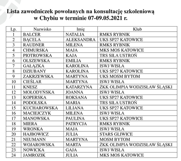 (piątek ) o godzinie 16 .00. Dojazd na miejsce i powrót z Chybia we własnym zakresie. Planowane zakończenie konsultacji 09 maja 2021 (niedziela ) o godz. 14.00. Osobą odpowiedzialną będzie trener Kadry Wojewódzkiej Młodzik w koszykówce dziewcząt Adam Wilkin .